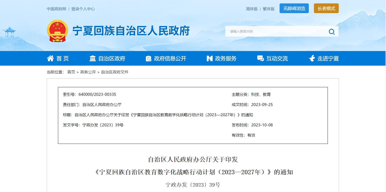 寧夏回族自治區(qū)教育數(shù)字化戰(zhàn)略行動計(jì)劃(2023—2027年)