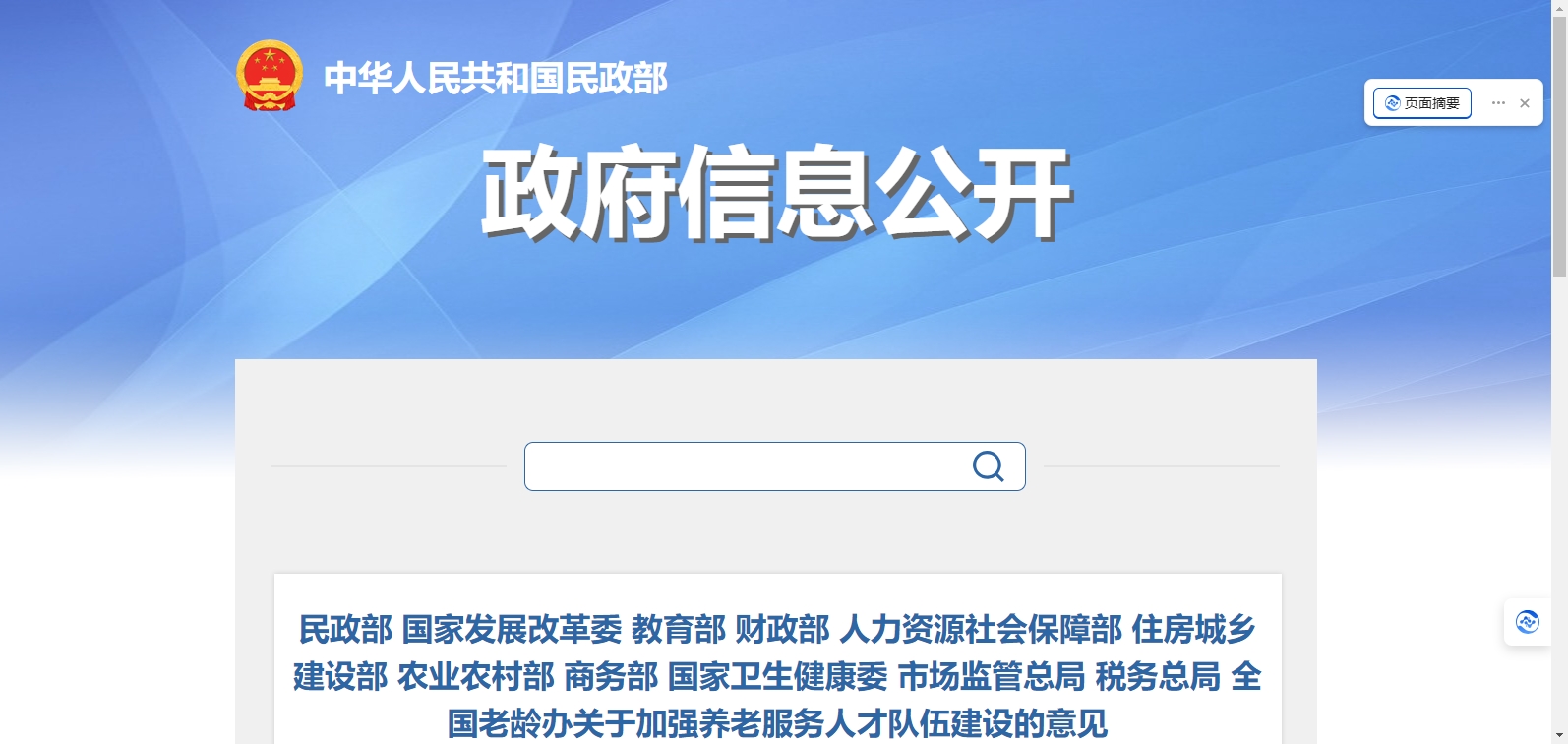 近日,為深入實(shí)施積極應(yīng)對人口老齡化國家戰(zhàn)略和新時(shí)代人才強(qiáng)國戰(zhàn)略,民政部、國家發(fā)展改革委、教育部、財(cái)政部、人力資源社會保障部、住房城鄉(xiāng)建設(shè)部、農(nóng)業(yè)農(nóng)村部、商務(wù)部、國家衛(wèi)生健康委、市場監(jiān)管總局、稅務(wù)總局、全國老齡辦等12部門聯(lián)合印發(fā)了《關(guān)于加強(qiáng)養(yǎng)老服務(wù)人才隊(duì)伍建設(shè)的意見》(以下簡稱《意見》)。