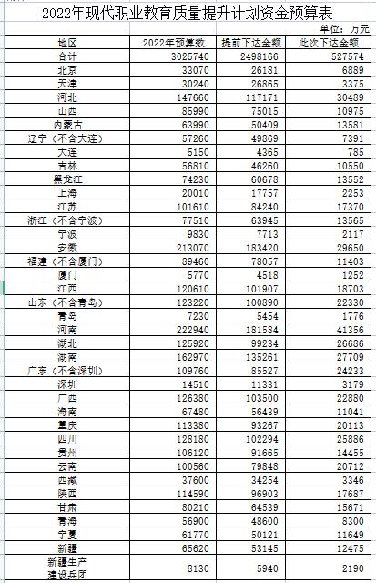 據(jù)財政部官網(wǎng),財政部、教育部近日發(fā)布通知,下達2022年現(xiàn)代職業(yè)教育質(zhì)量提升計劃資金預算,本次下達資金預算金額為52.76億元,加上已提前下達金額249.81億元,目前累計下達預算為302.57億元。......