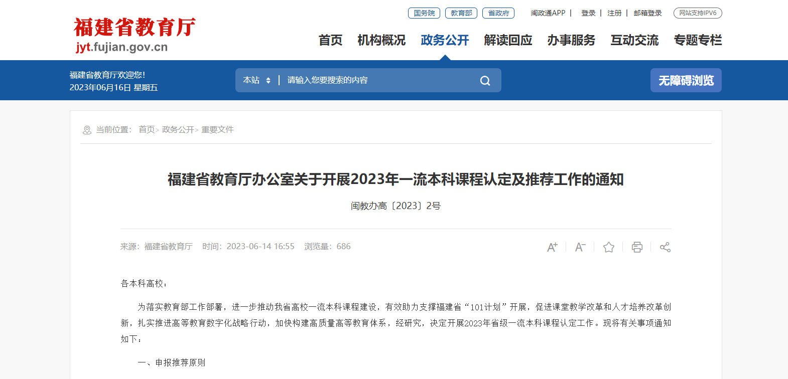 福建省教育廳辦公室發(fā)布關(guān)于開展2023年一流本科課程認(rèn)定及推薦工作的通知