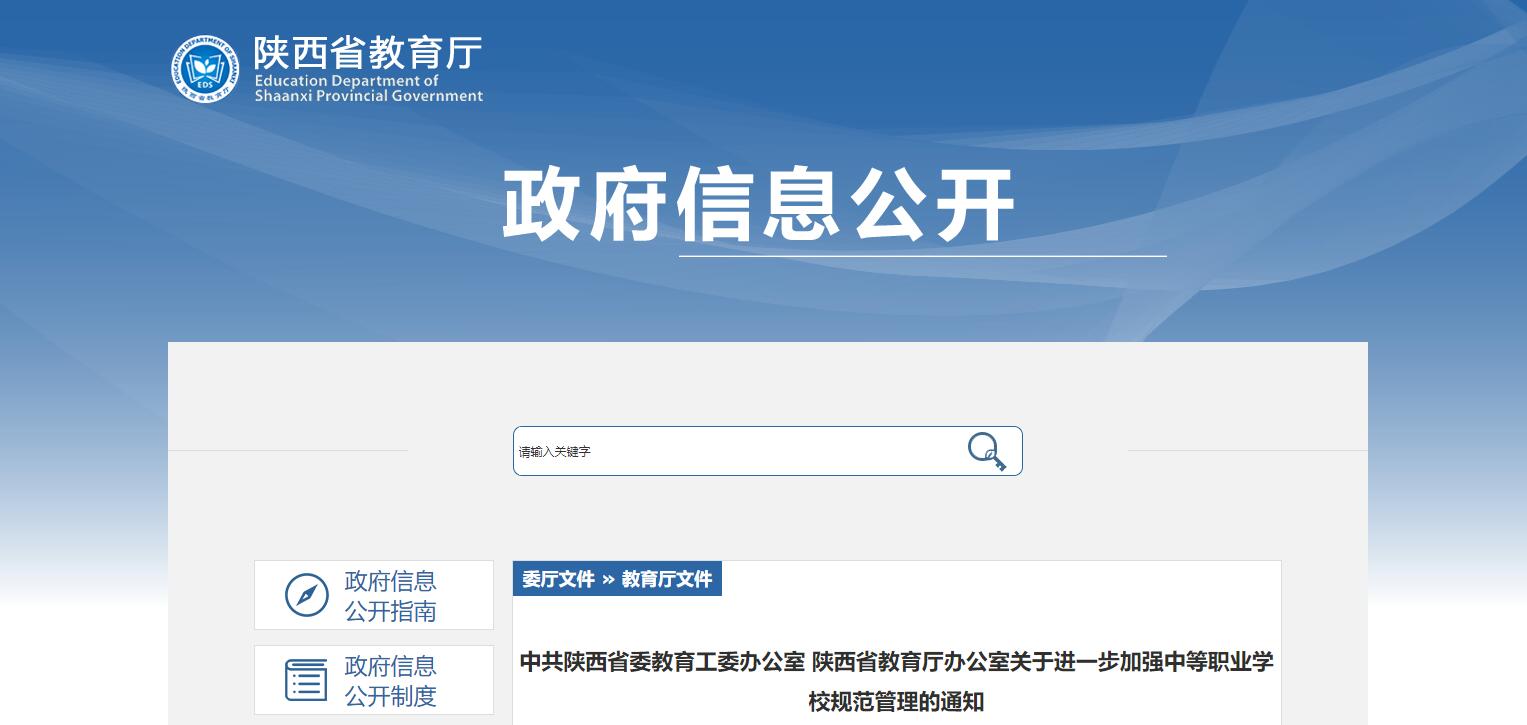 陜西省教育廳發(fā)布《關(guān)于進一步加強中等職業(yè)學校規(guī)范管理的通知》