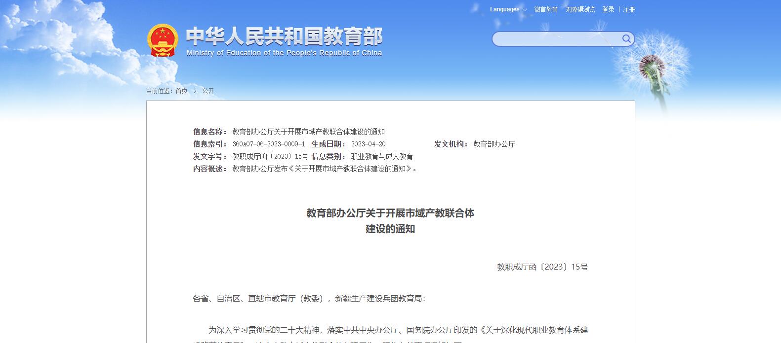 教育部發(fā)布關(guān)于開展市域產(chǎn)教聯(lián)合體建設(shè)的通知