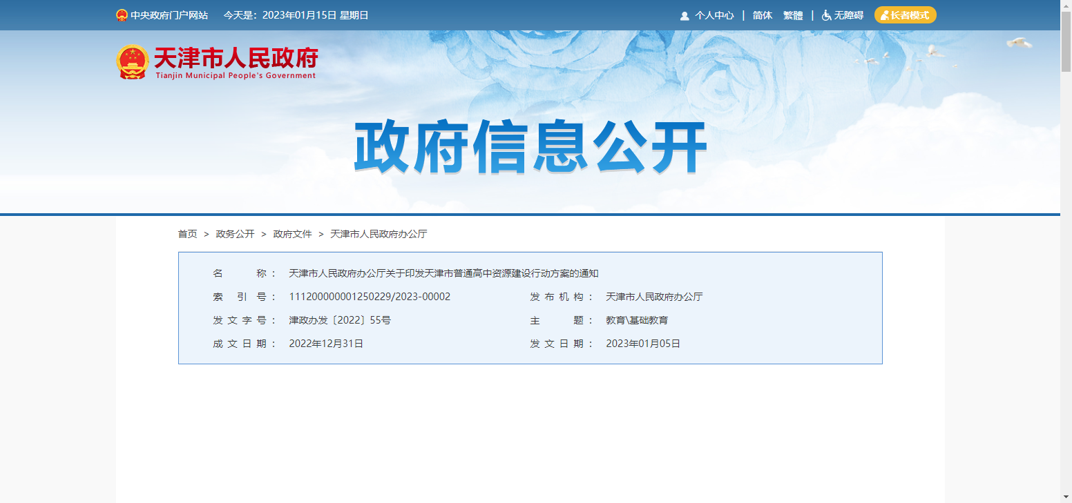 《天津市普通高中資源建設(shè)行動(dòng)方案》發(fā)布