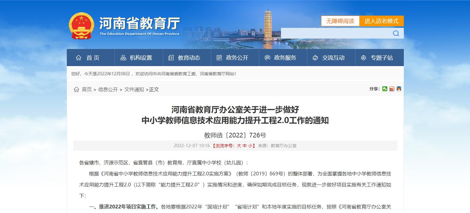 河南省教育廳辦公室關于進一步做好 中小學教師信息技術應用能力提升工程2.0工作的通知