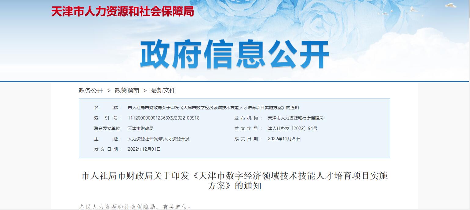 天津出臺數(shù)字人才培育落地政策 將在2030年末培育數(shù)字經(jīng)濟技術技能人才1萬人以上